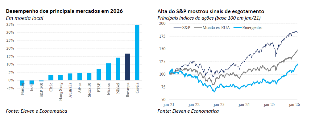 As bolsas internacionais seguem em alta em 2026. Contudo, as bolsas americanas