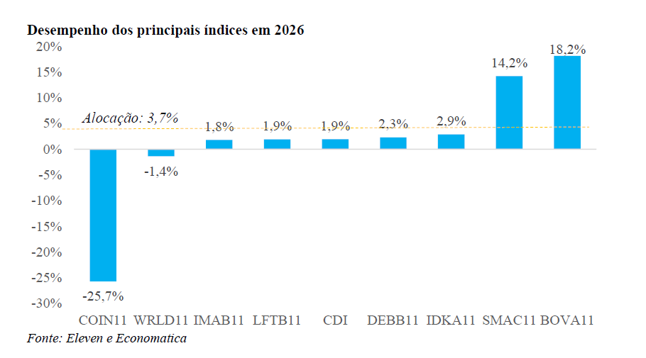 ser visto acima. A alocação em cripto (COIN11) foi o maior detrator da