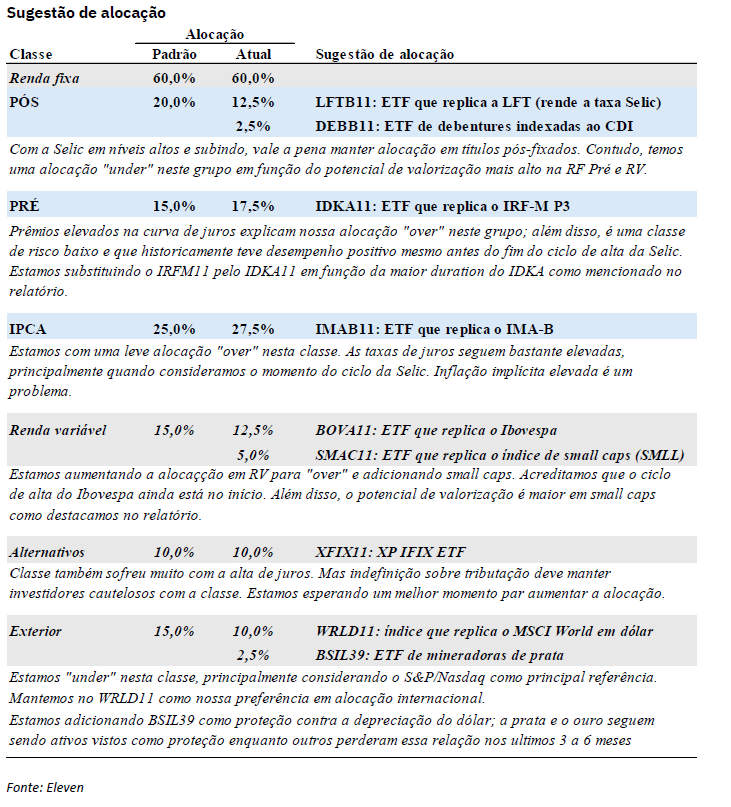 duration) e small caps na renda variável (maior beta).